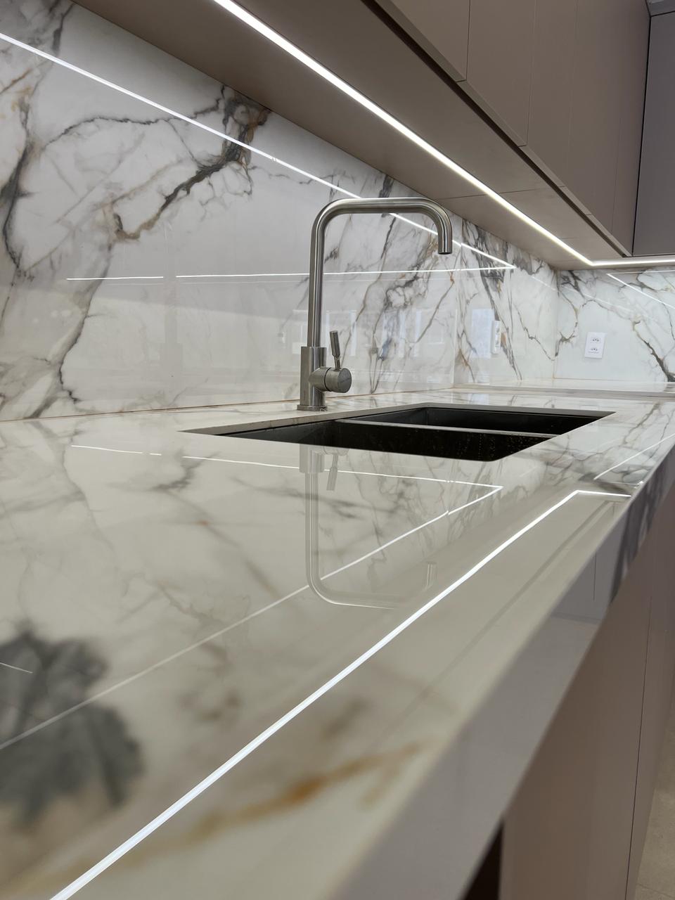 Duráveis, sofisticadas e sob medida. As bancadas valorizam sua cozinha com elegância e funcionalidade.